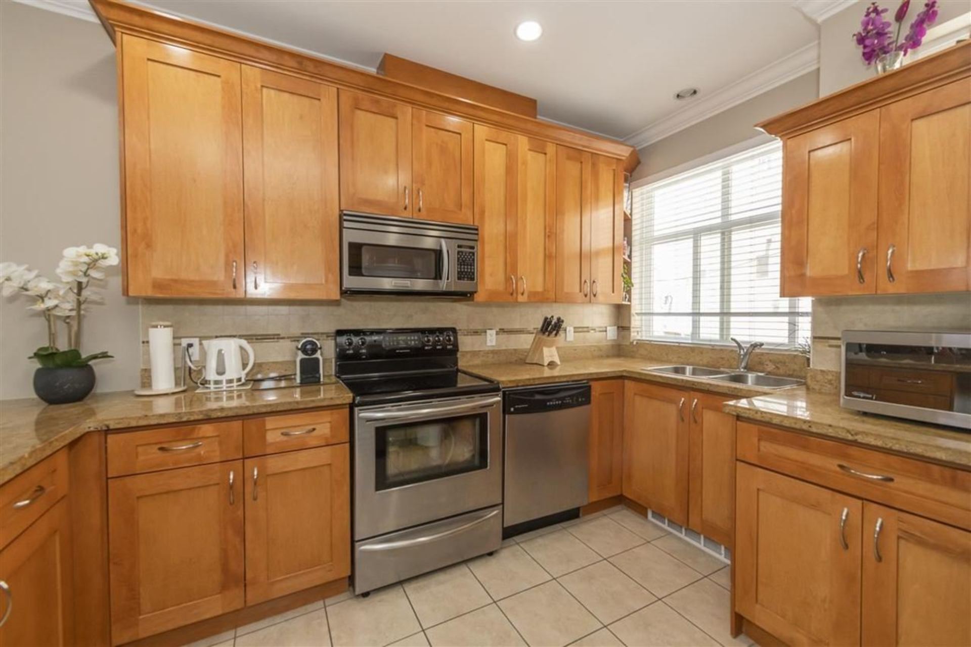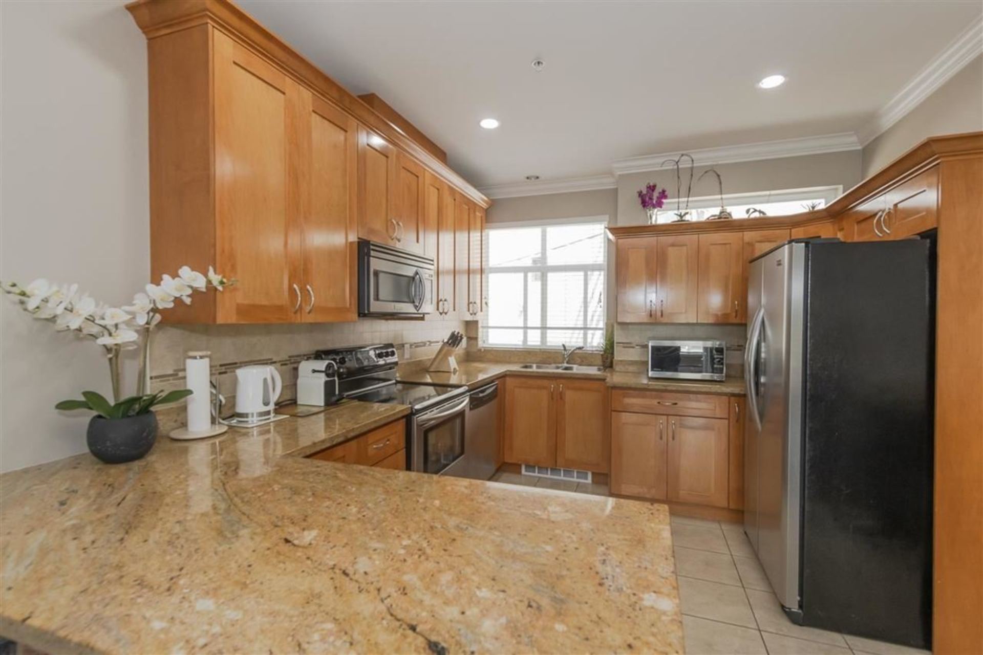 Fantastic Cedar Cottage location. Located on quiet tree lined street. 1135 SF plus 230 SF attached, heated garage with crawl space. This well maintained 3 bedroom, 2.5 bath townhouse has an open livingroom, dining room, kitchen design. Features granite countertops and stainless steel appliances. Bright upper floor has vaulted ceilings, skylights, laundry and master bedroom balcony. Lower level garage has been converted into a rec room with excellent storage in crawl space. Walking distance to transportation, parks, great restaurants, cafes, shops on both Fraser and Main area. School Catchment: Elementary - Charles Dickens Elementary, Secondary - Sir Charles Tupper Secondary.