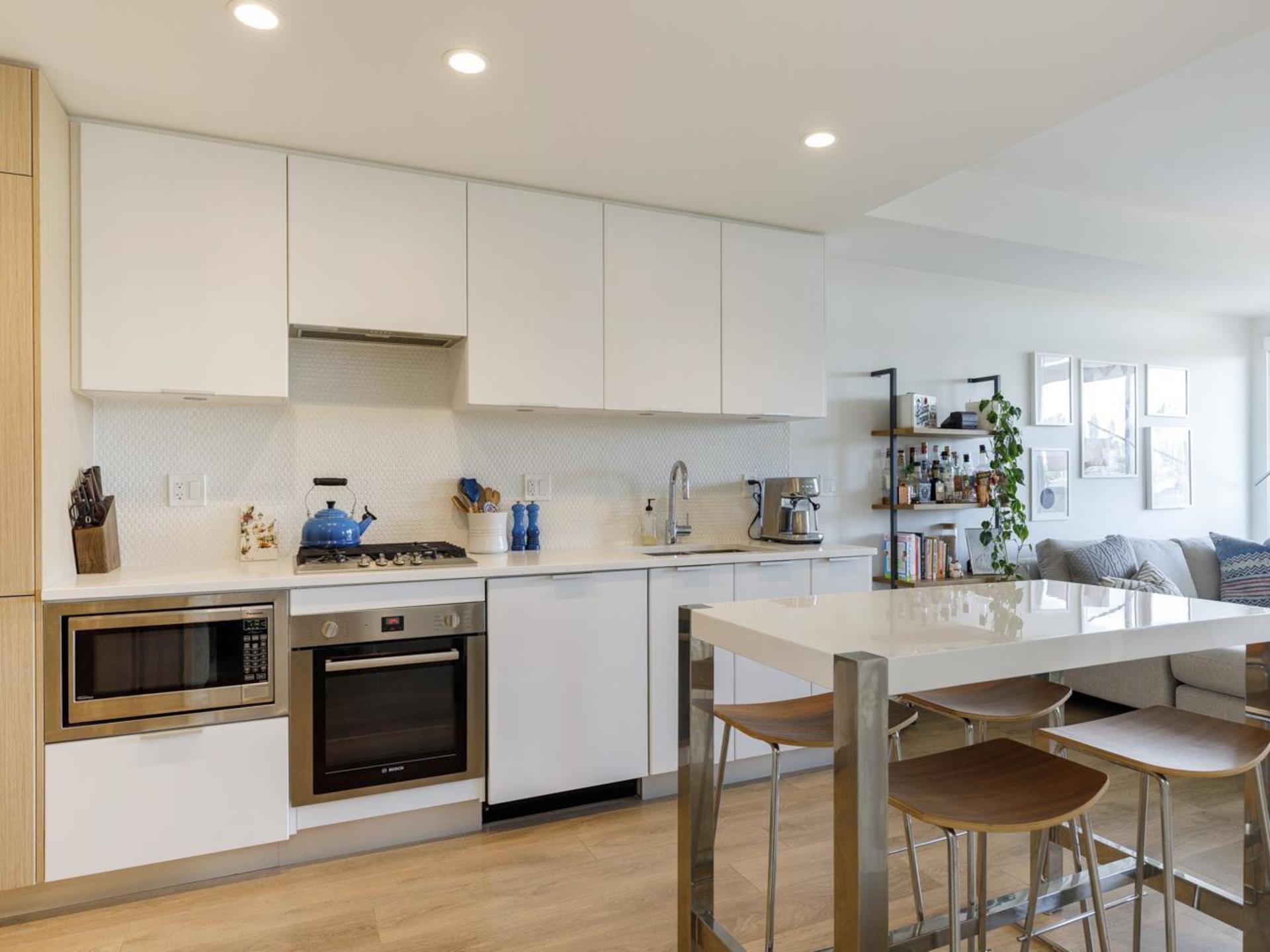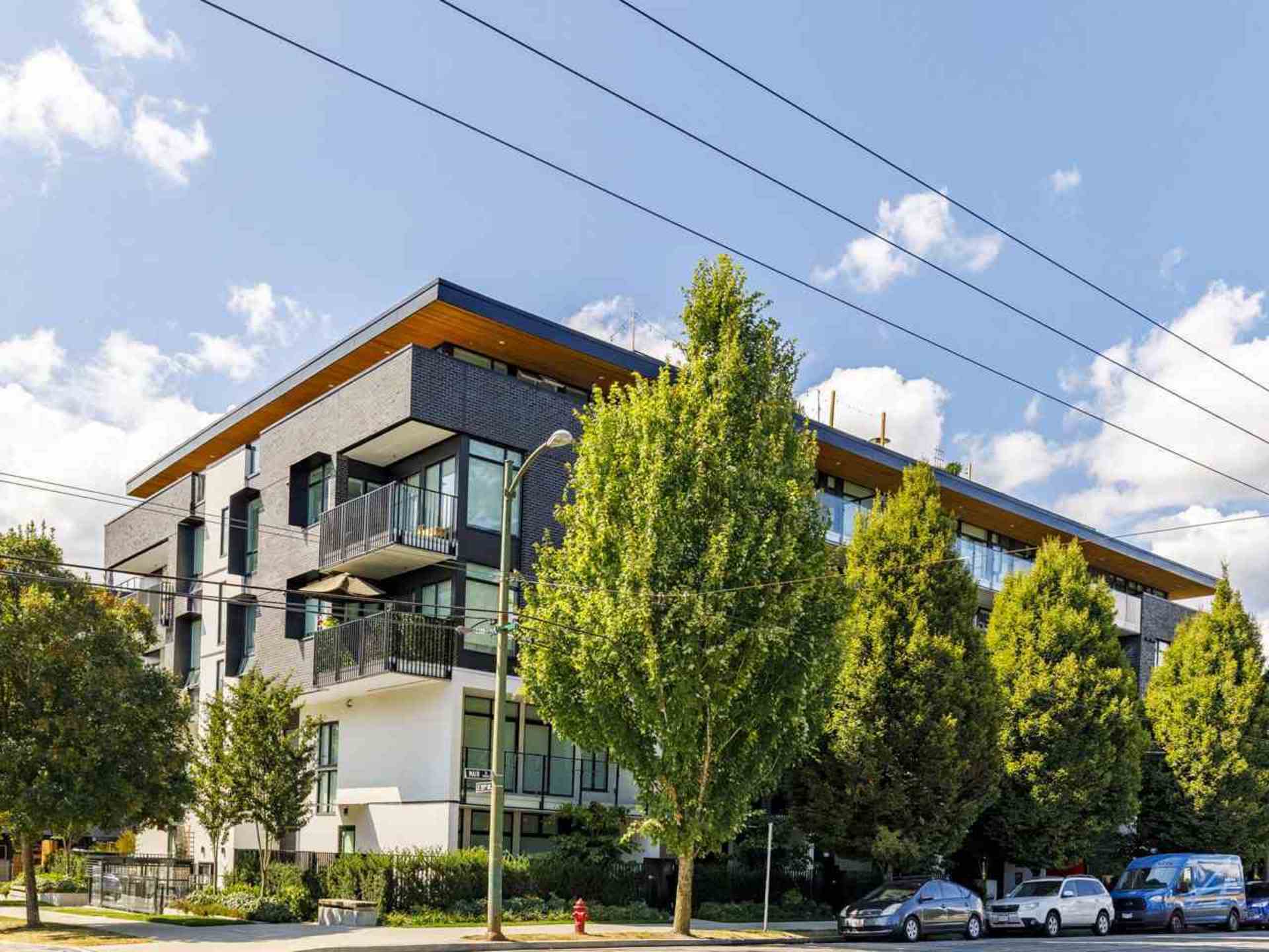Fall in love with Little Mountain! Tucked behind QE Park and connecting directly to Main's trendiest eateries and shops.Built w/ energy conservation in mind- EASTPARK- certified LEED Platinum.This light,bright & airy home is equipped w/ wide plank flooring (upgraded to incl. bedroom),integrated Bosch appliances, gas range, quartz countertops & dual tone cabinetry.Wall to wall windows allow light to flow through, softly filtered w/ roller shades-sleep soundly w/ upgraded blackout shades in the bedroom.Sleek and modern design w/ over height ceilings coupled with a thoughtful use of space.Flex room with laundry and plenty of space for storage or the ultimate walk in closet! Spacious balcony w/ a bright exposure, over looking trees & views to the mountains.Parking w/ EV outlet + Pets allowed!