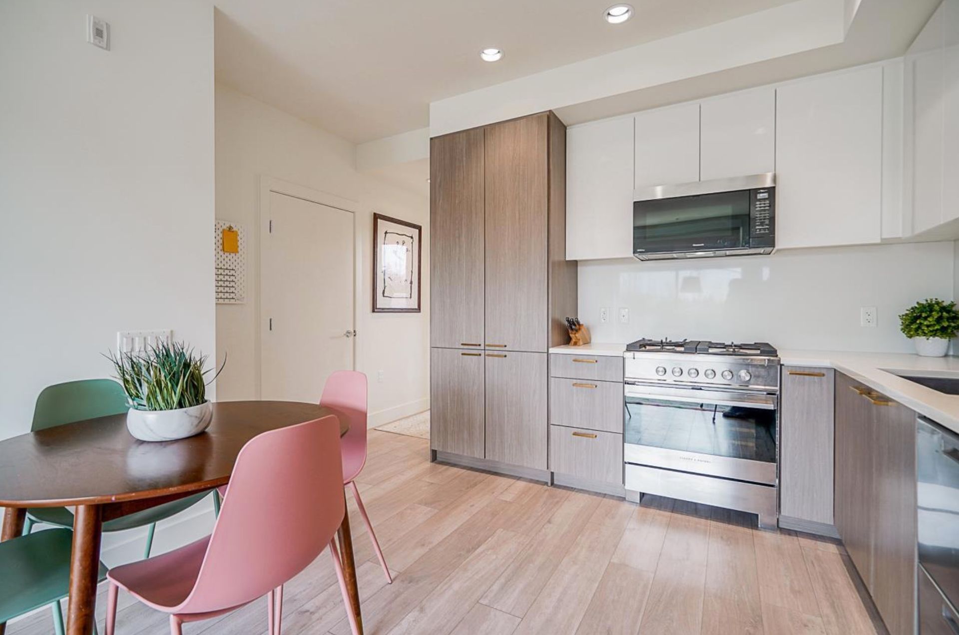 KENSINGTON VIEWS! A MUST SEE! An intelligent and timeless floor plan comprised of two bedrooms, two full bathrooms as well as RARE 152 SQFT patio exclusive to this home. This kitchen features refined brass finishing on warm toned wooden cabinetry, Fisher and Paykel stainless steel appliances, and gas stove top. Premium wide plank laminate flooring throughout and Smart Home features. Conveniently located in trendy Mount Pleasant. You are minutes away from local cafes, restaurants and shops. 10 minutes from downtown and also in the Charles Dickens catchment area. This unit is situated on the quiet side of the building. Additionally, 1 parking stall is included. Rentals and Pets are welcome!