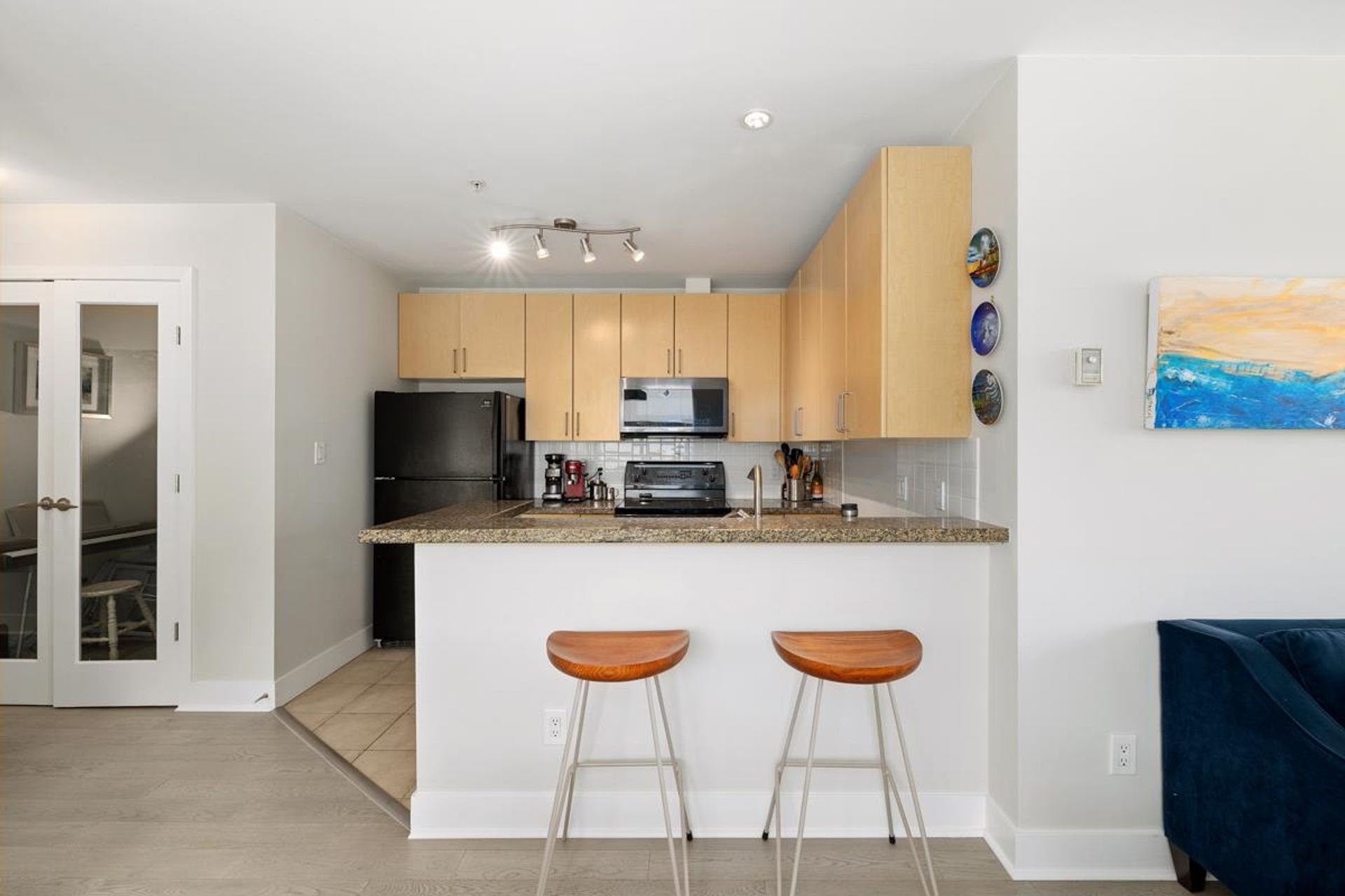 Arbutus Outlook! CONCRETE Boutique style building centrally located in fabulous Kitsilano's Arbutus Walk neighbourhood. Bright and well laid out 2 bed /2 bath + Den features updated flooring throughout, Large kitchen/ living room/dining room overlooking the arbutus greenway. A well designed, well maintained and well run strata that's a short walk to shopping, transit, coffee, restaurants, groceries Pet Friendly and comes with 1 parking.